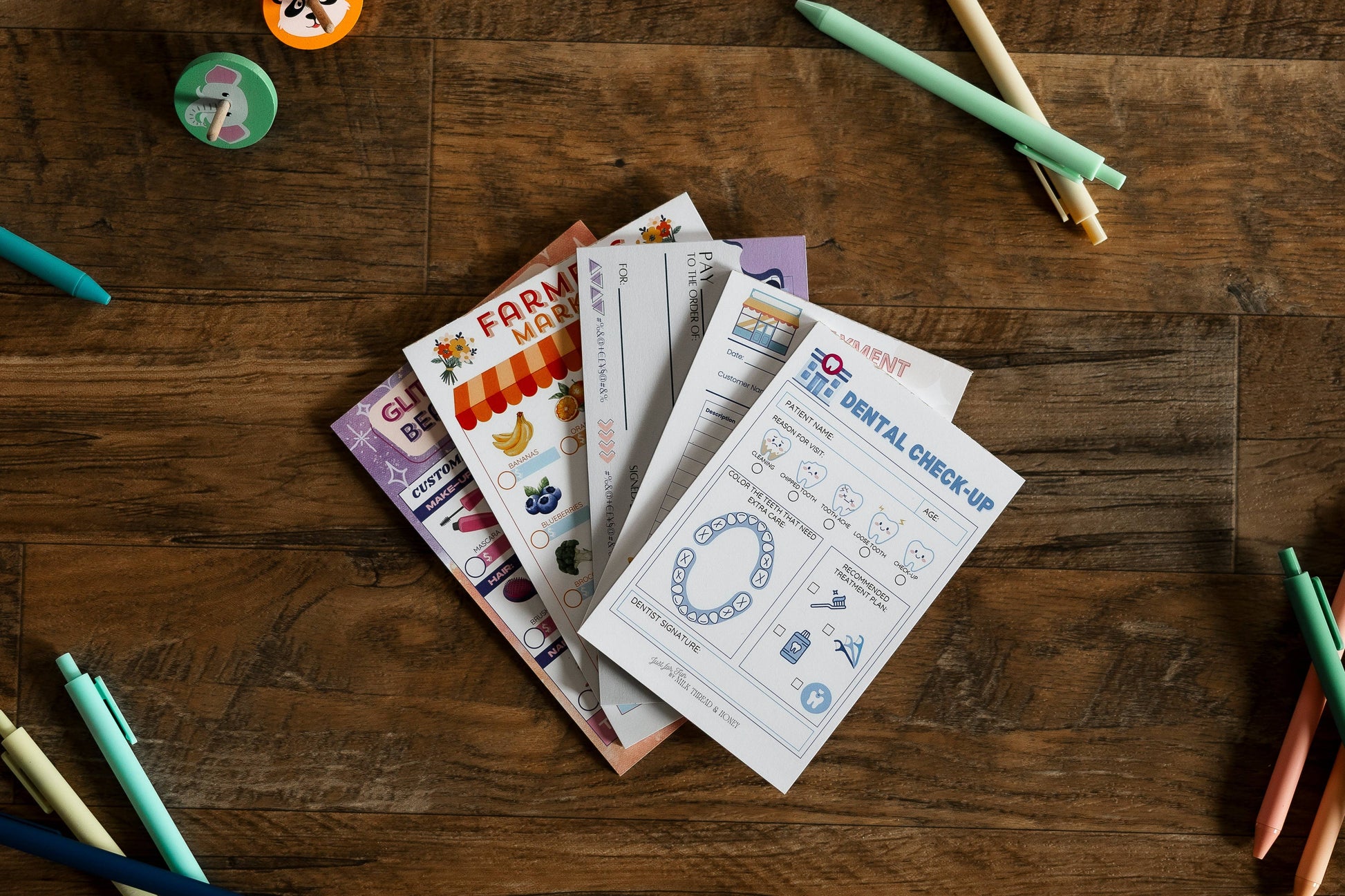 Pretend to buy and sell at the Farmer's Market with these fun pretend notepads. They will inspire pretend creative play and spark your child’s imagination for hours of screen-free playtime! It’s a fun and interactive way for kids to step into the role of farmer's market shop owner. These unique notepads encourage creativity, problem-solving, and imaginative play. They offer ideas for a pretend farmer's market through bright and engaging graphics to make the experience more realistic and exciting, while teaching kids about the duties of different jobs.